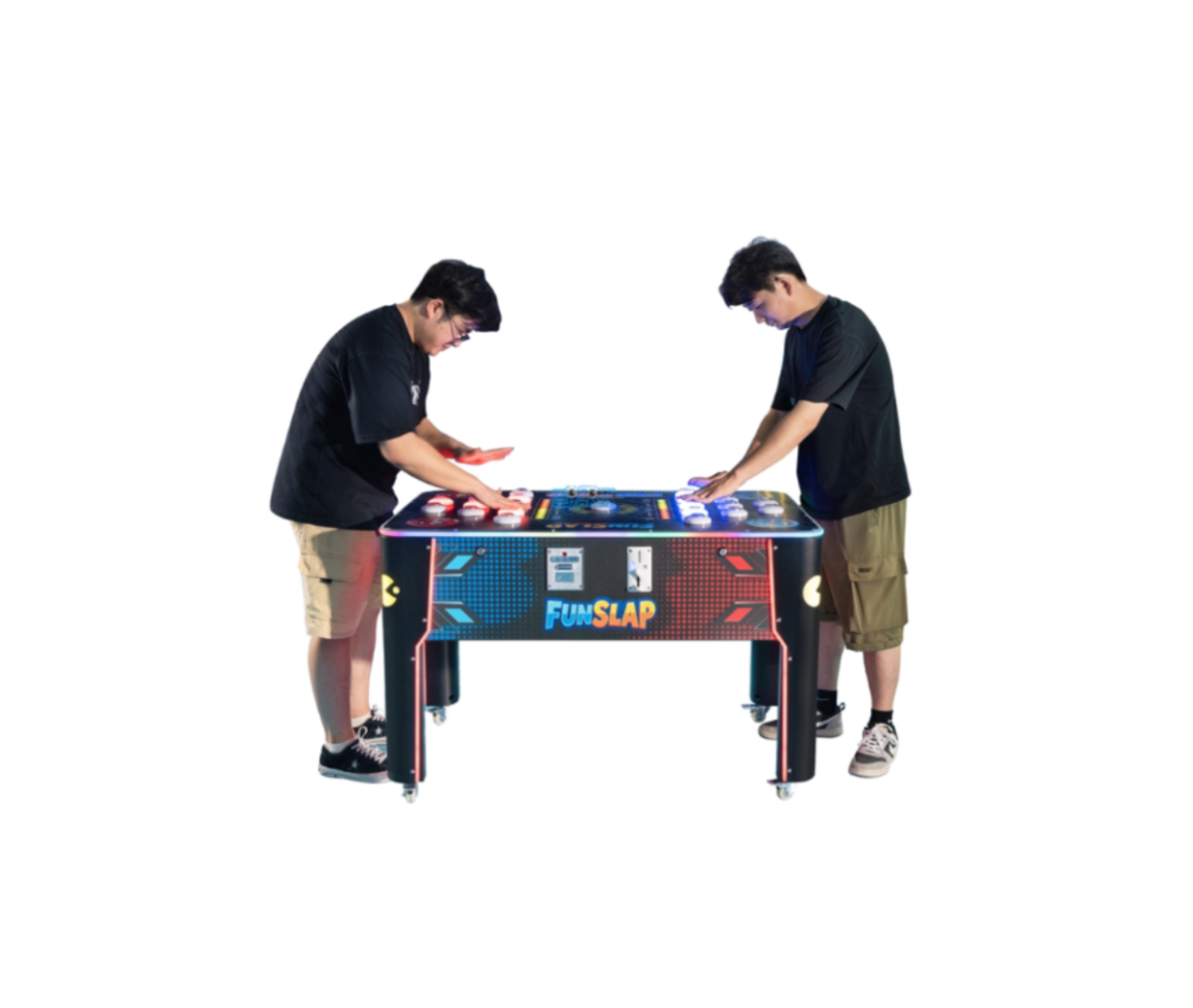 Fun Slap es un juego arcade interactivo 1 vs 1, diseñado para competiciones rápidas y llenas de energía. Dos jugadores se enfrentan cara a cara, y el objetivo es presionar lo más rápido posible los botones que se encienden aleatoriamente, poniendo a prueba los reflejos, la coordinación y la velocidad de reacción en un gameplay dinámico y cautivador.